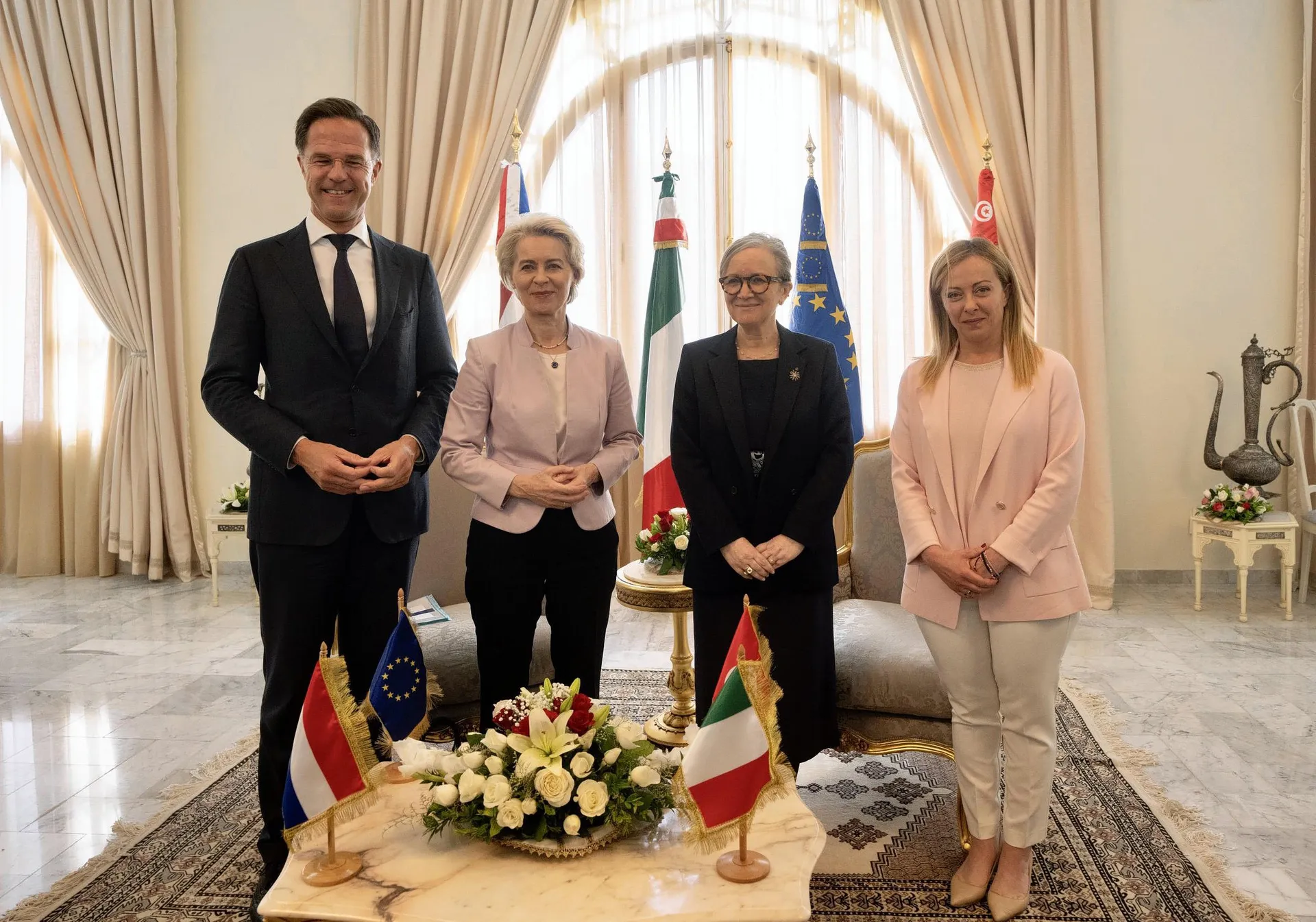 Europa maakt op korte termijn in totaal 250 miljoen euro vrij voor Tunesië, dat in economische problemen verkeert. Dit bedrag kan oplopen tot zeker 1 miljard euro. Dat hebben Commissievoorzitter Ursula von der Leyen, premier Mark Rutte en zijn Italiaanse ambtsgenoot Giorgia Meloni zondag in Tunis bekendgemaakt. Het trio, dat „team Europa” vertegenwoordigt, was zondag in Tunesië om met de regering van de autocratische president Kais Saied te praten over steun en samenwerking op het gebied van economie en migratie.